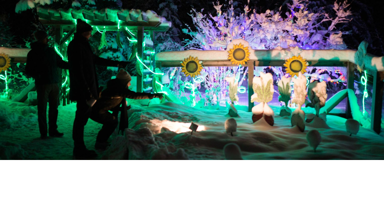 Experience the Garden as a winter wonderland! Featuring botanical themed light displays, ice lumaniarias, cozy firepits, a kicksled trail, and model train.